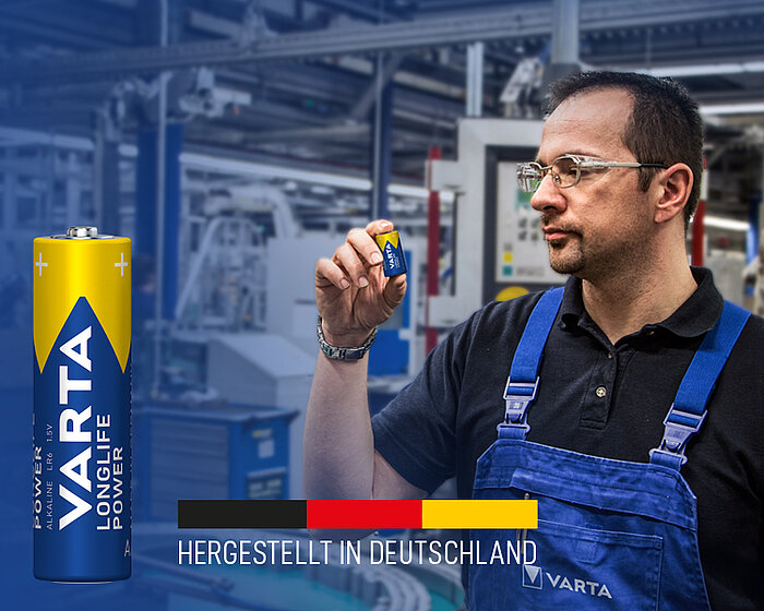 Unsere leistungsstarken Alkaline Batterien werden mit höchster Sorgfalt und Präzision in Dischingen, im Herzen Deutschlands, für dich gefertigt. Die kurzen Wege in unserer Produktion ermöglichen nicht nur schnelle Reaktionszeiten, sondern garantieren auch eine besonders hohe Qualität und Zuverlässigkeit.