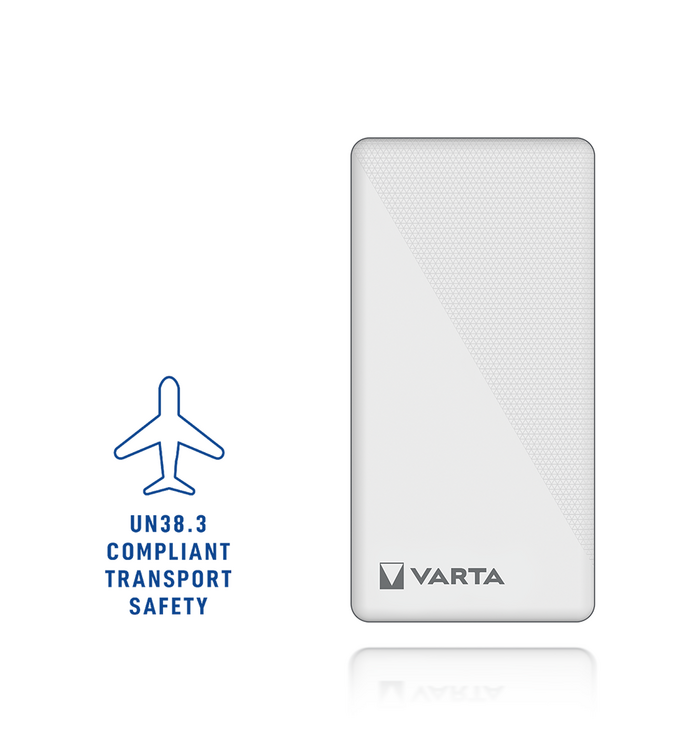 VARTA has good news for everyone who uses a smartphone or tablet, plays games on a regular basis or organizes marathon gaming series. Not only are VARTA’s Power Banks the perfect power sources whenever a battery is running low, they’re also equipped with the latest safety features. They have temperature control and mechanisms to protect against deep discharge, overcharging, overcurrent, input-overvoltage and short circuiting, so they can cope with every challenge. All there VARTA Power Banks have been tested for air, land and water travel in accordance with UN38.3 Transport Safety Regulations and are therefore the perfect companion on any long journey. However, Power Banks should only be carried in hand baggage and MUST NOT be stowed in checked luggage. The highest capacity of Power Banks on Airplanes is limited to 27,000 mAh. Regulations vary from one airline to another, so if you would like to take several Power Banks with you, be sure to contact your airline before you start your journey.